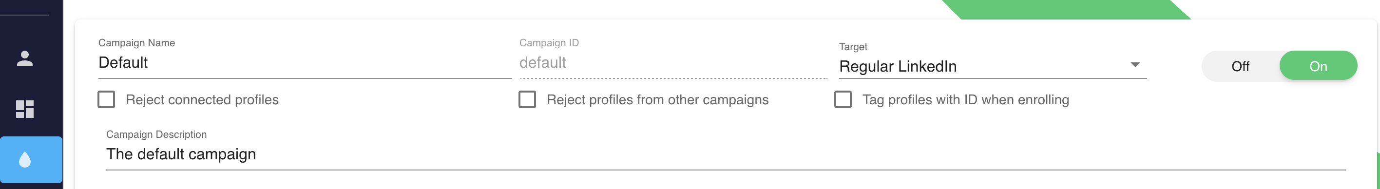 The Default campaign is the pre-set campaign you can modify but you cannot delete it.