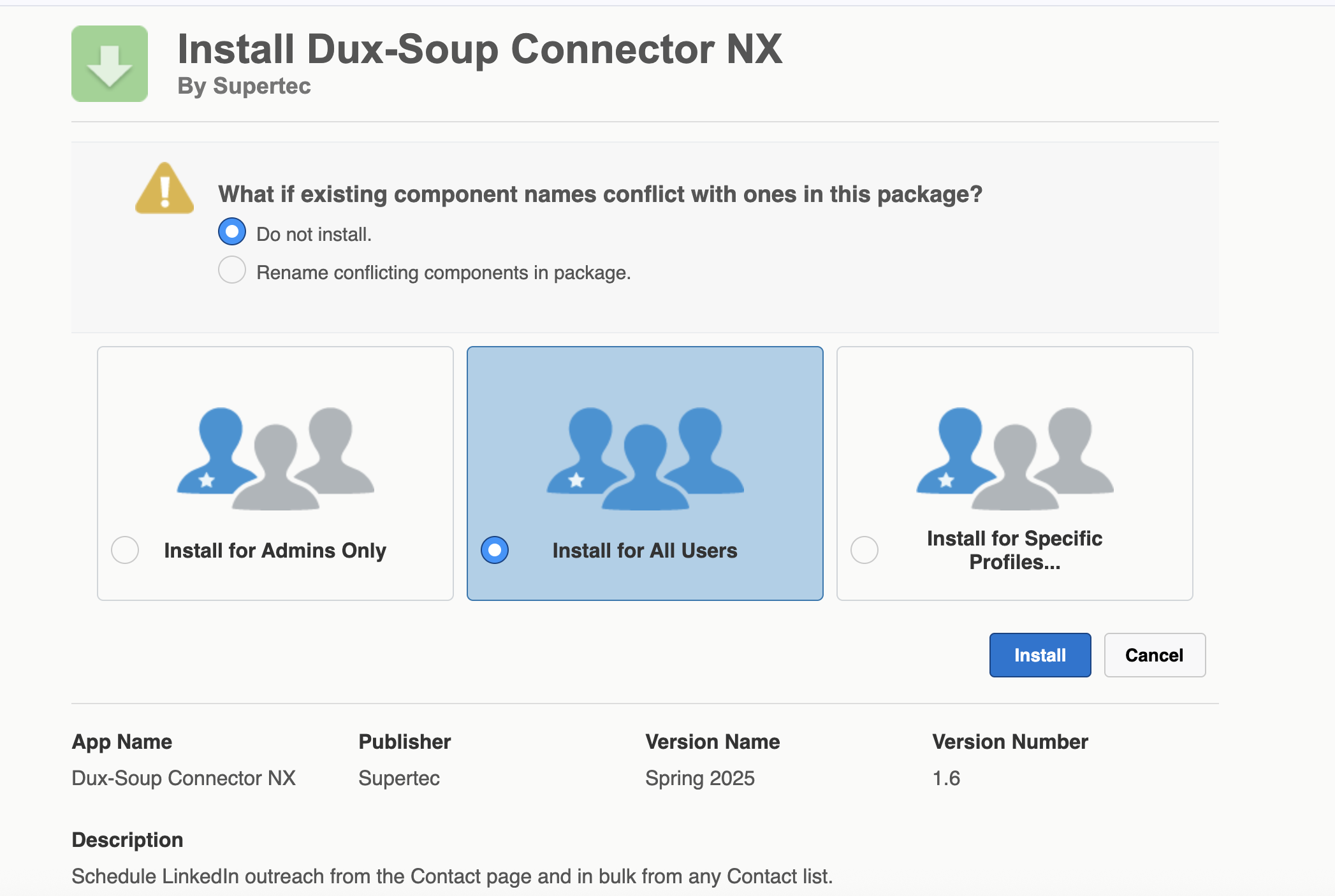 How to install the Dux-Soup package or Connector NX for Salesforce CRM