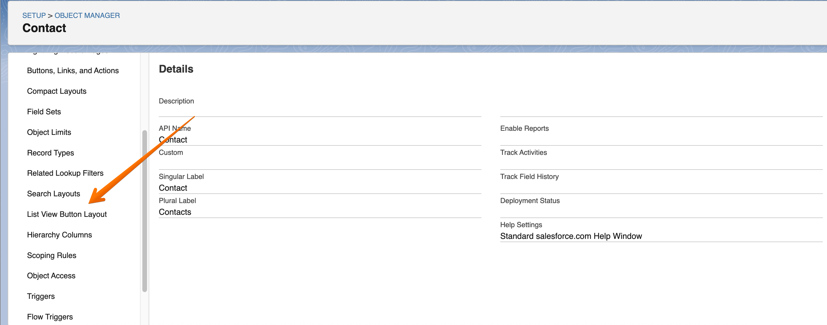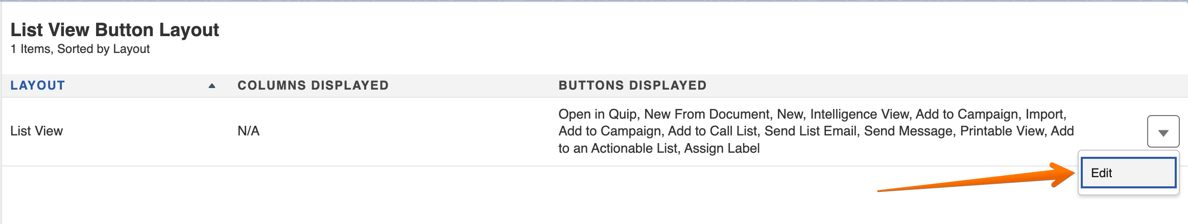 Scroll down the menu and select the 'List View Button Layout' option: