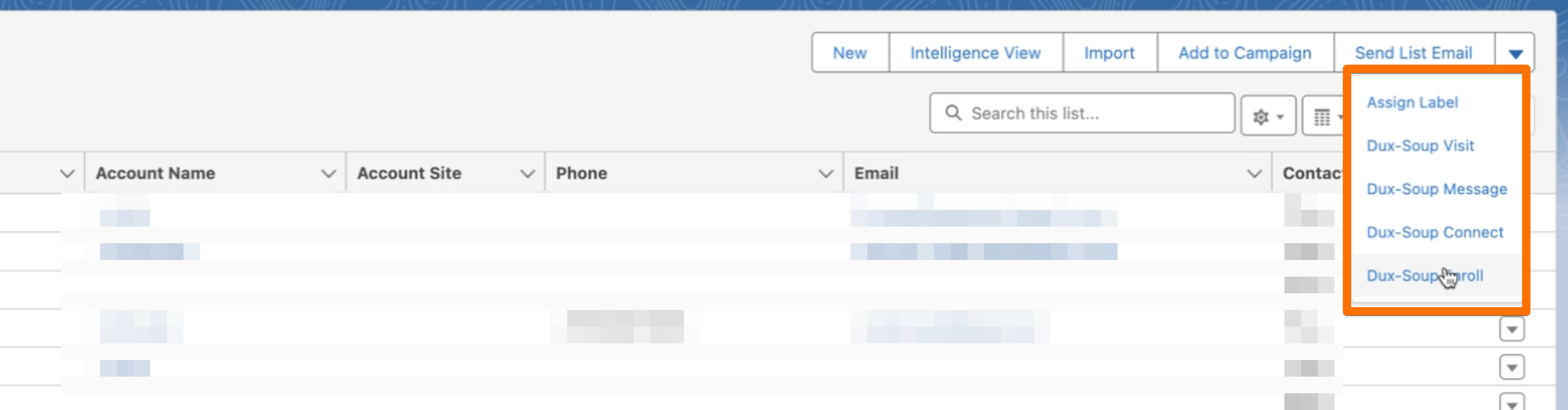 How to enable bulk Dux-Soup actions in Salesforce Contacts list