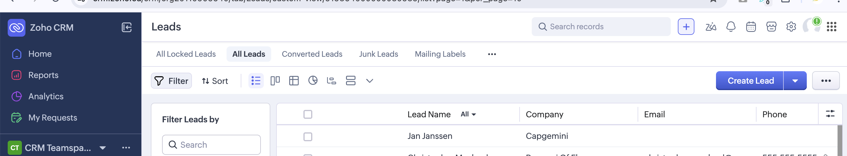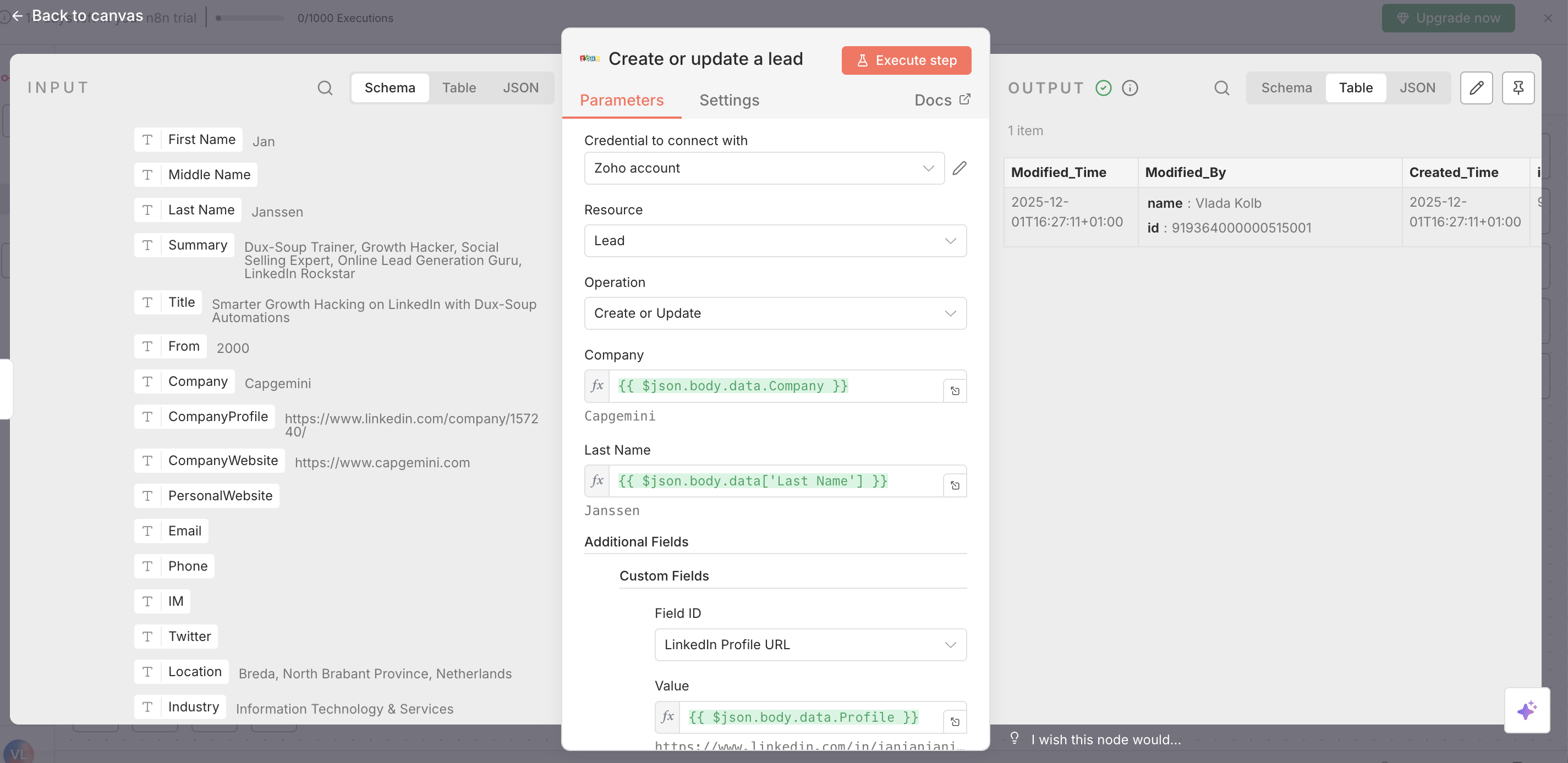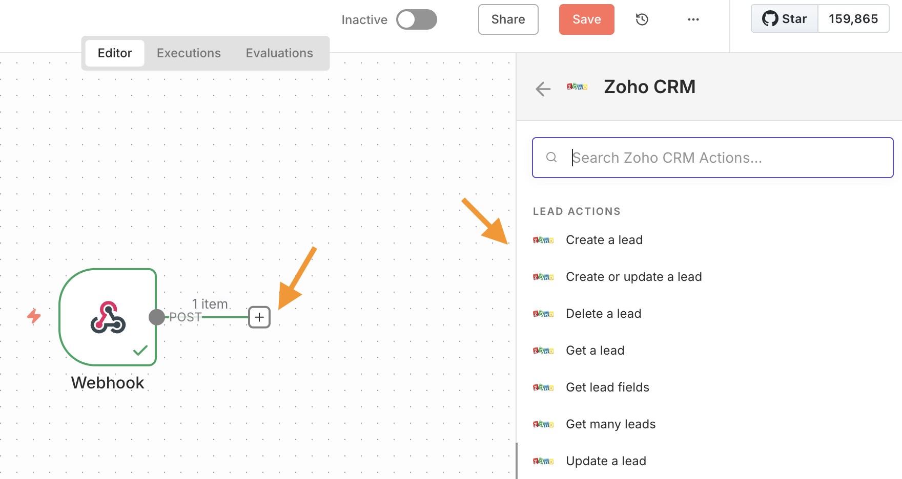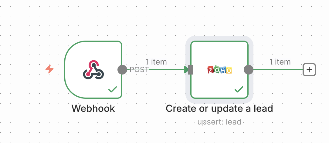 Add Zoho CRM to your n8n workflow → Create or update a lead