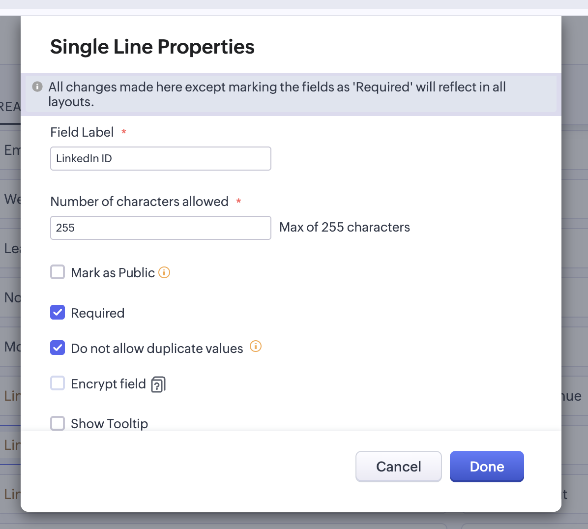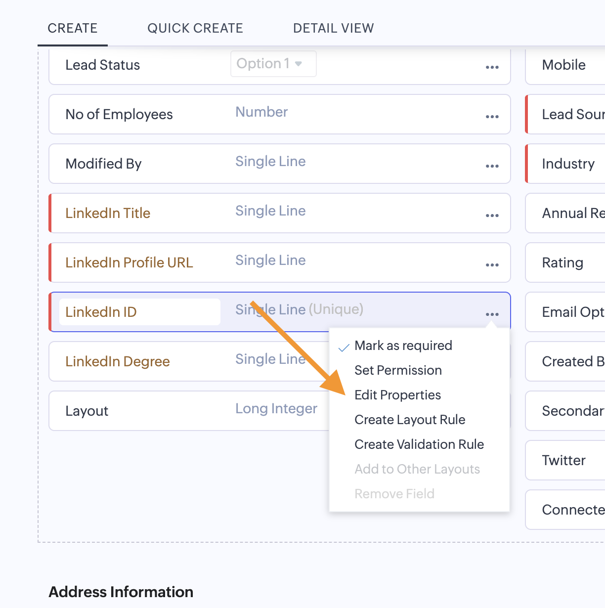 - Locate the LinkedIn ID field you set in the previous steps and click on 'Edit Properties'.