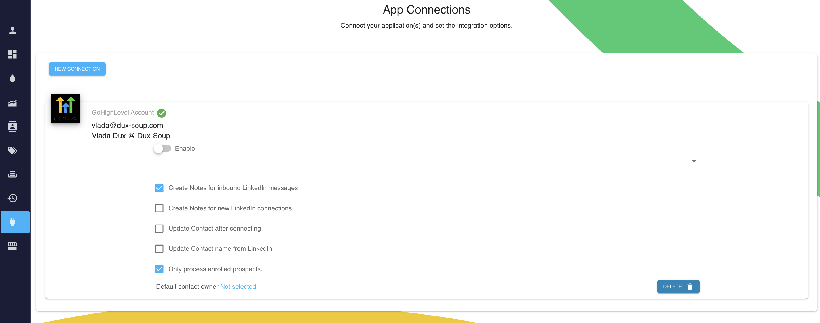 You can access GoHighLevel CRM integration if you have Dux-Soup Turbo or Cloud.