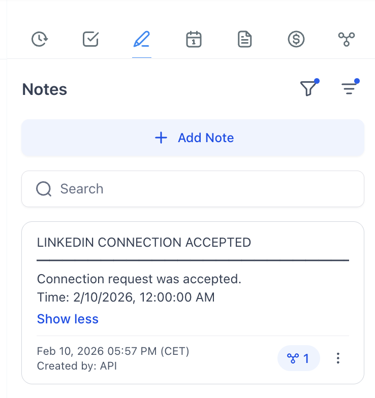 Create Notes for new LinkedIn connections - add Contact Notes when a connection request is accepted.