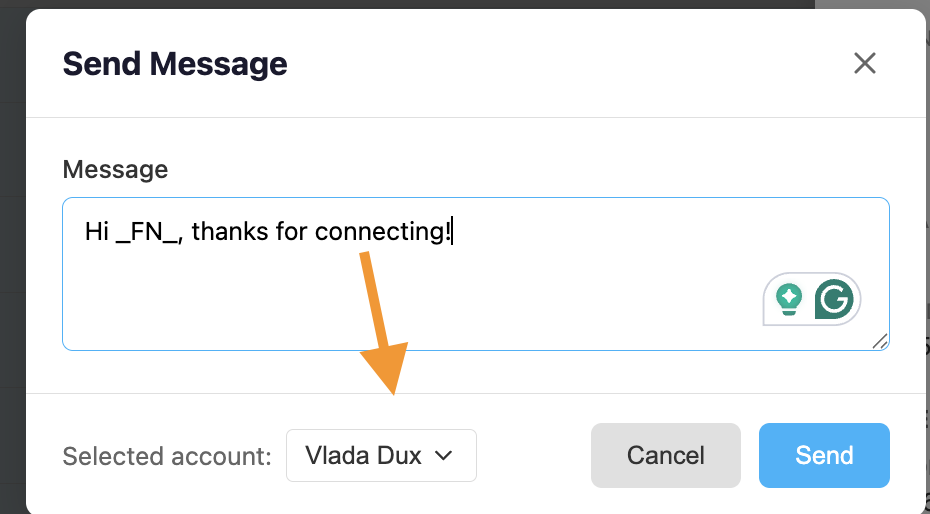 When scheduling an action, you can choose a different account to perform the action. This option is available both from an individual contact profile page and from the Dux-Soup live when performing bulk actions.