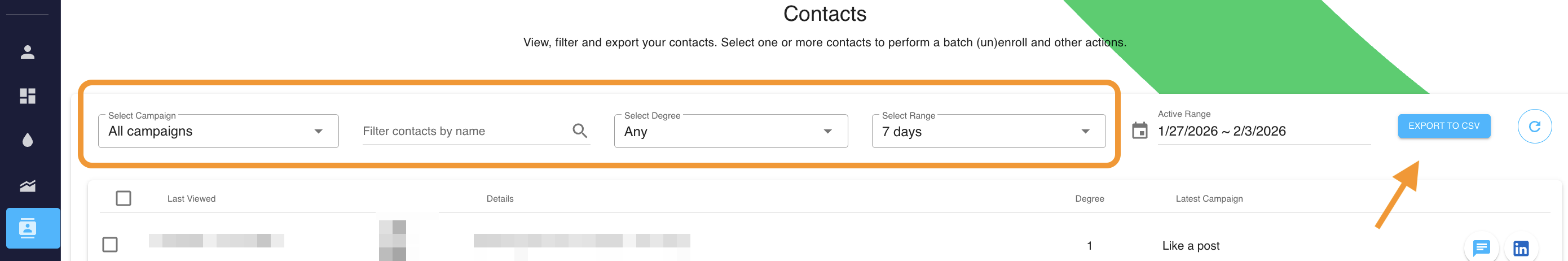2. Apply the available filters, such as campaign name, profile degree, or last viewed date.