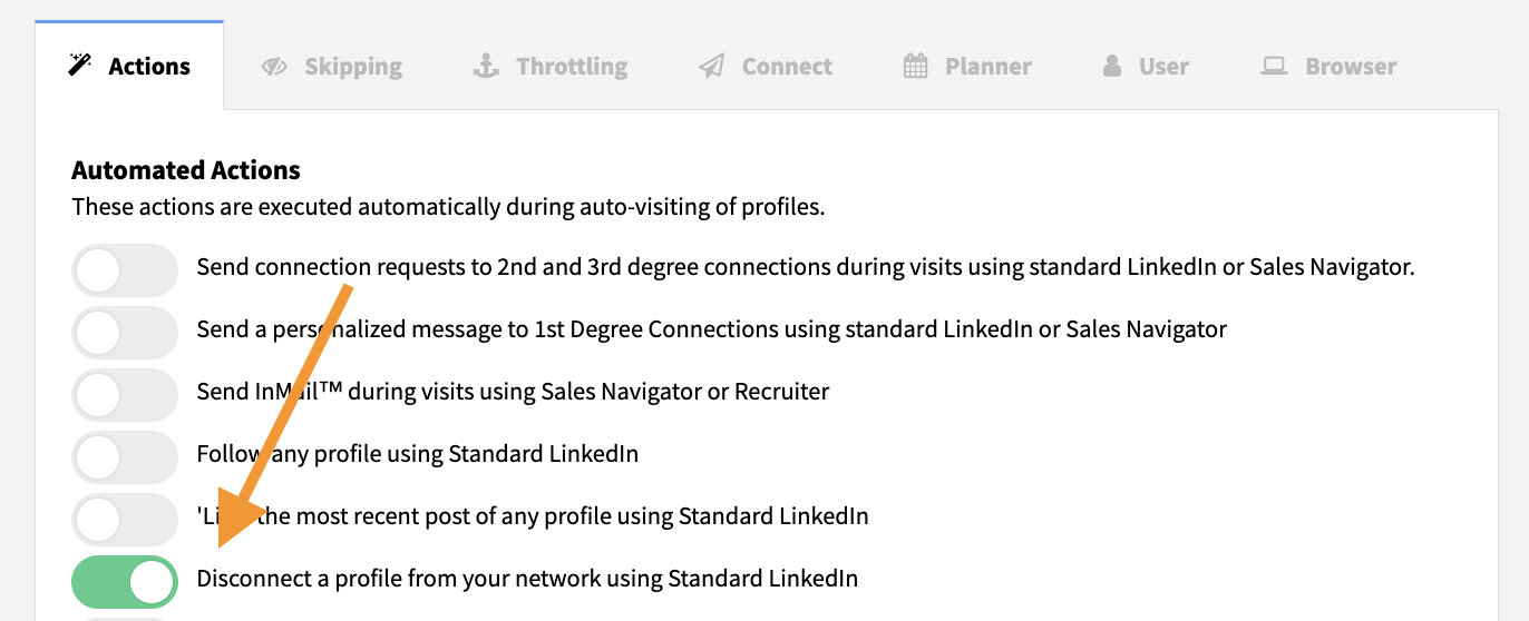and enable Disconnect a profile from your network using Standard LinkedIn.