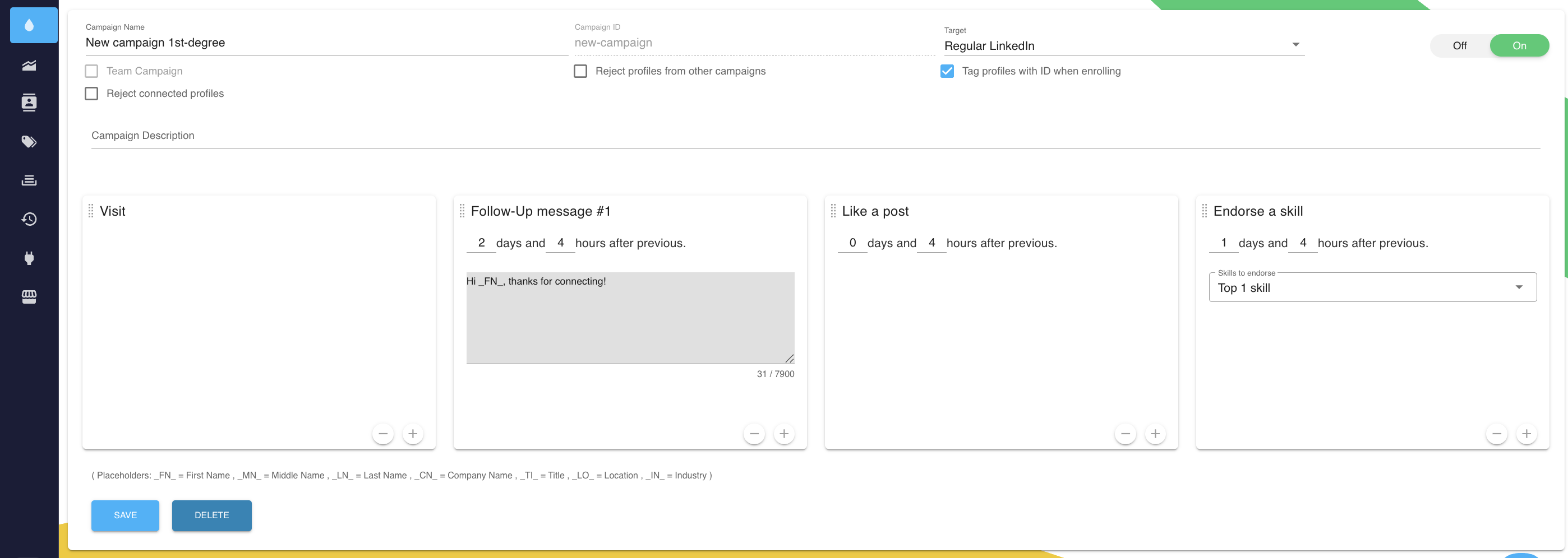 There are four types of campaigns you can set up and run with Dux-Soup: